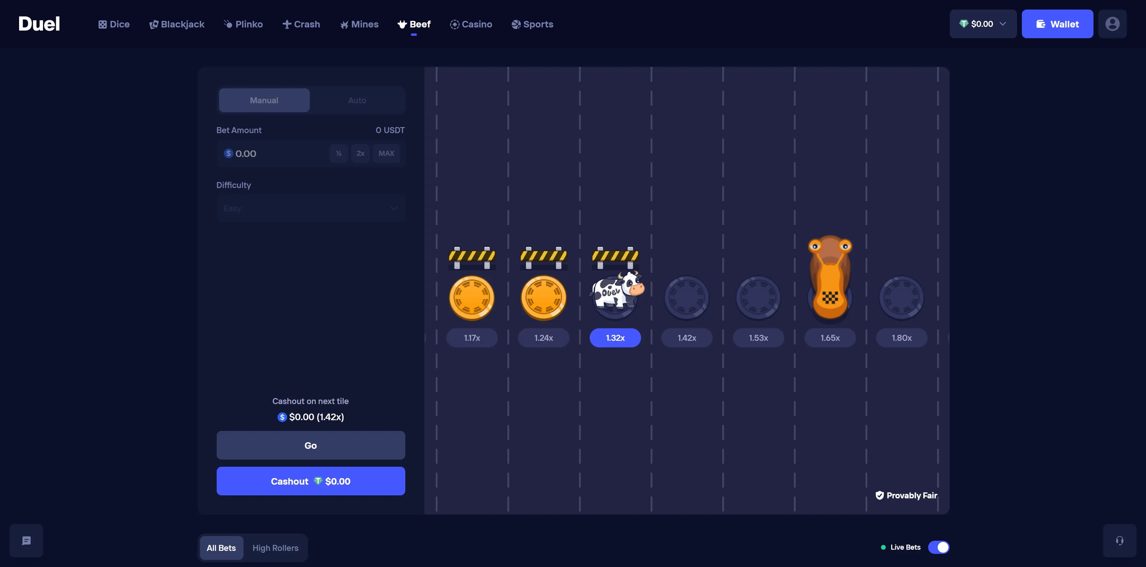 Duel has a small selection of 6 originals and these come with quite literally the best casino odds in the world at 100% RTP. These numbers are unheard of in the space and Duel are making a name for themselves by doing what no greedy casino has ever considered before.