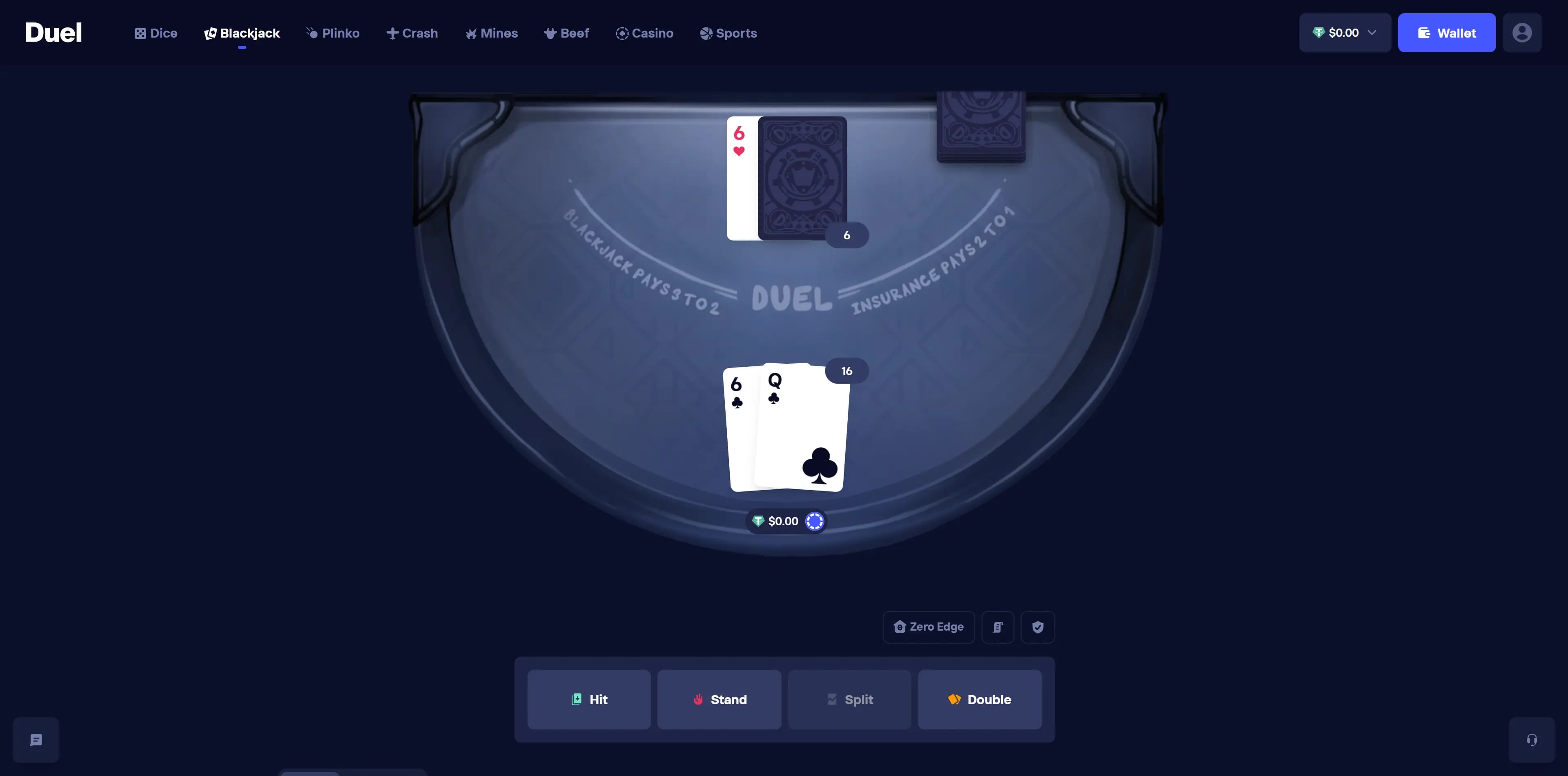 | Blackjack | 0% |