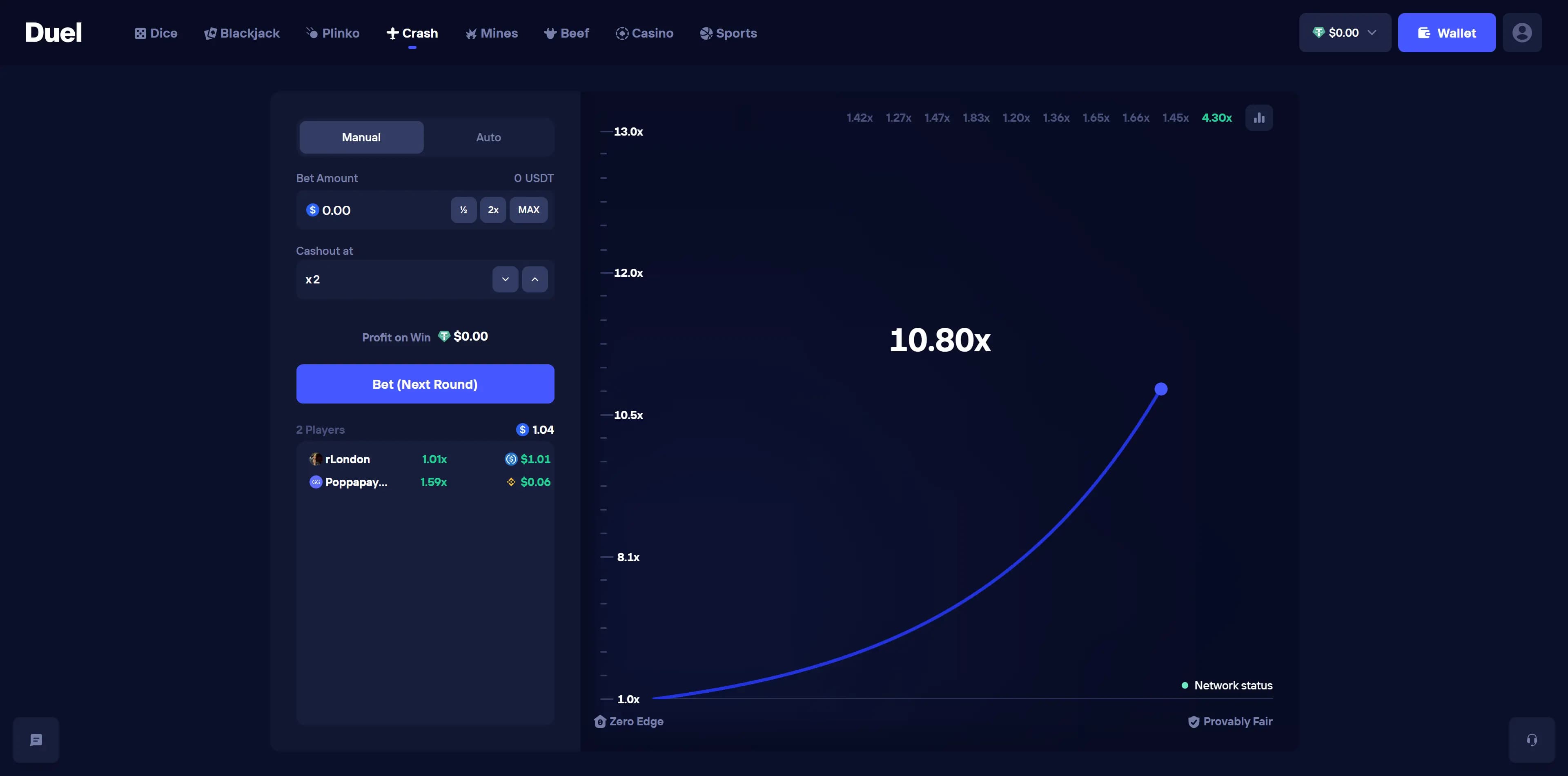 Duel.com is the new kid on the block and has fast become one of the biggest in the space, and for good reason. There is no site in the space where you can play at the most pure, fair odds possible like Duel. This is why +EV Club recommend playing here over anywhere else.