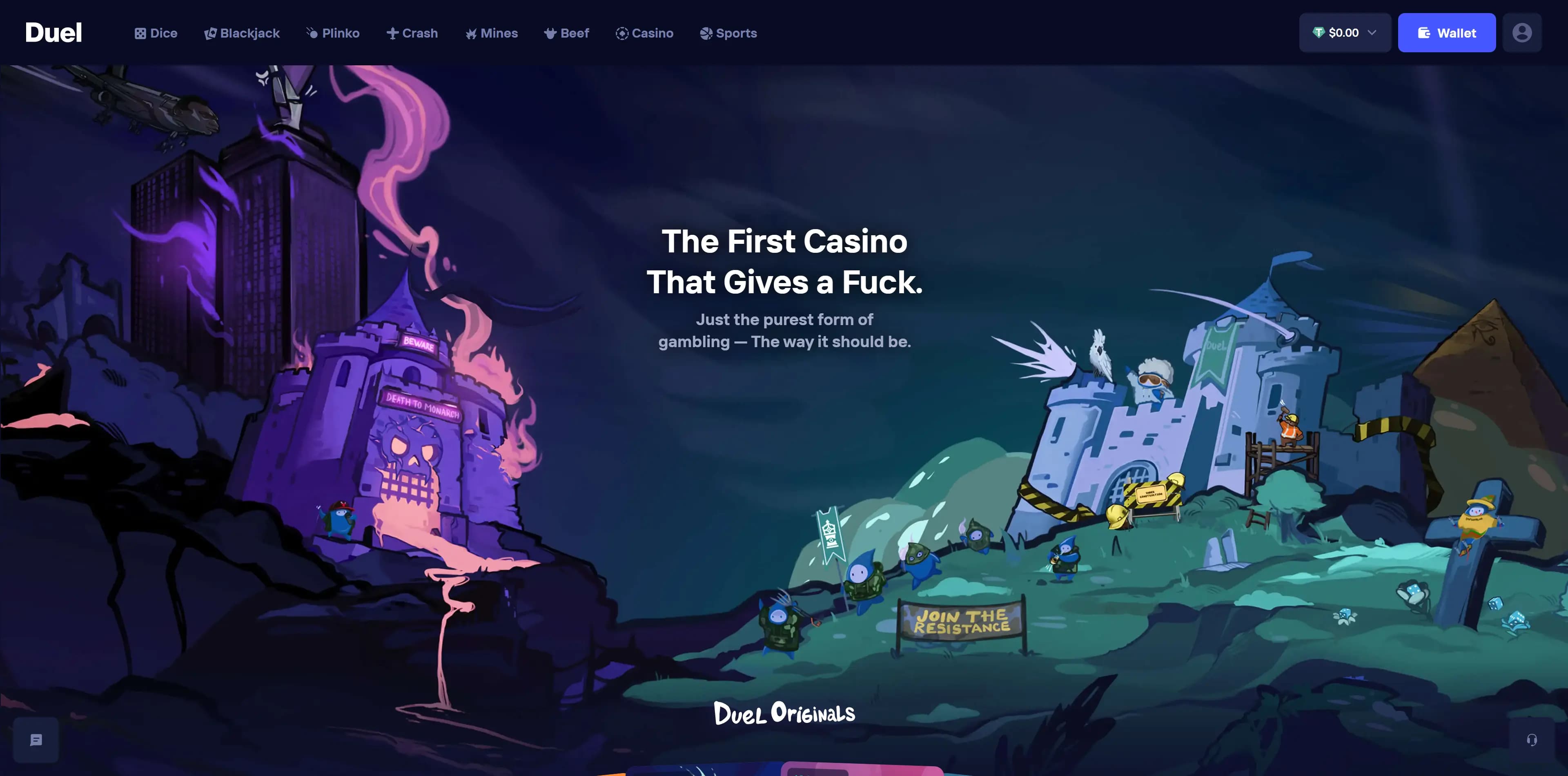 Duel.com is the new casino on the scene and is very quickly becoming one of the biggest names in the space. With the 100% RTP originals, a NO KYC policy and the best instant rakeback system around, players are quickly ditching other sites to sign up.