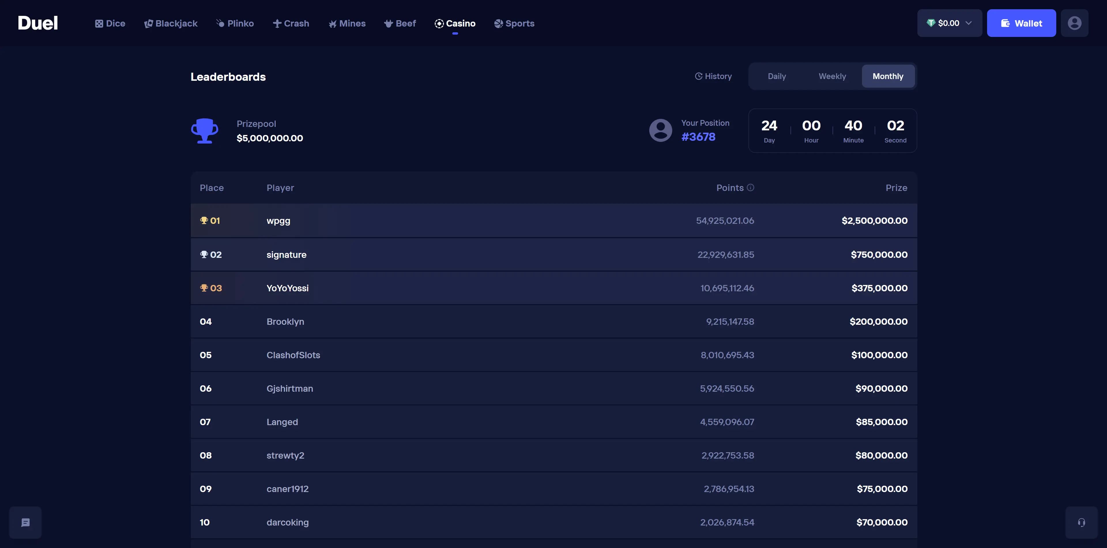 Duel.com are offering insane leaderboards where they are literally gifting you most of your EV back. This month theyre running a $5m monthly, $500k weekly and $100/50k weeklies. On these boards you can find so many +EV opportunities. The likes of Stake and Shuffle don't even come close to providing the same level of value as Duel in their leaderboards. If you are going to gamble, do it somewhere where you operate as close to +EV as possible.