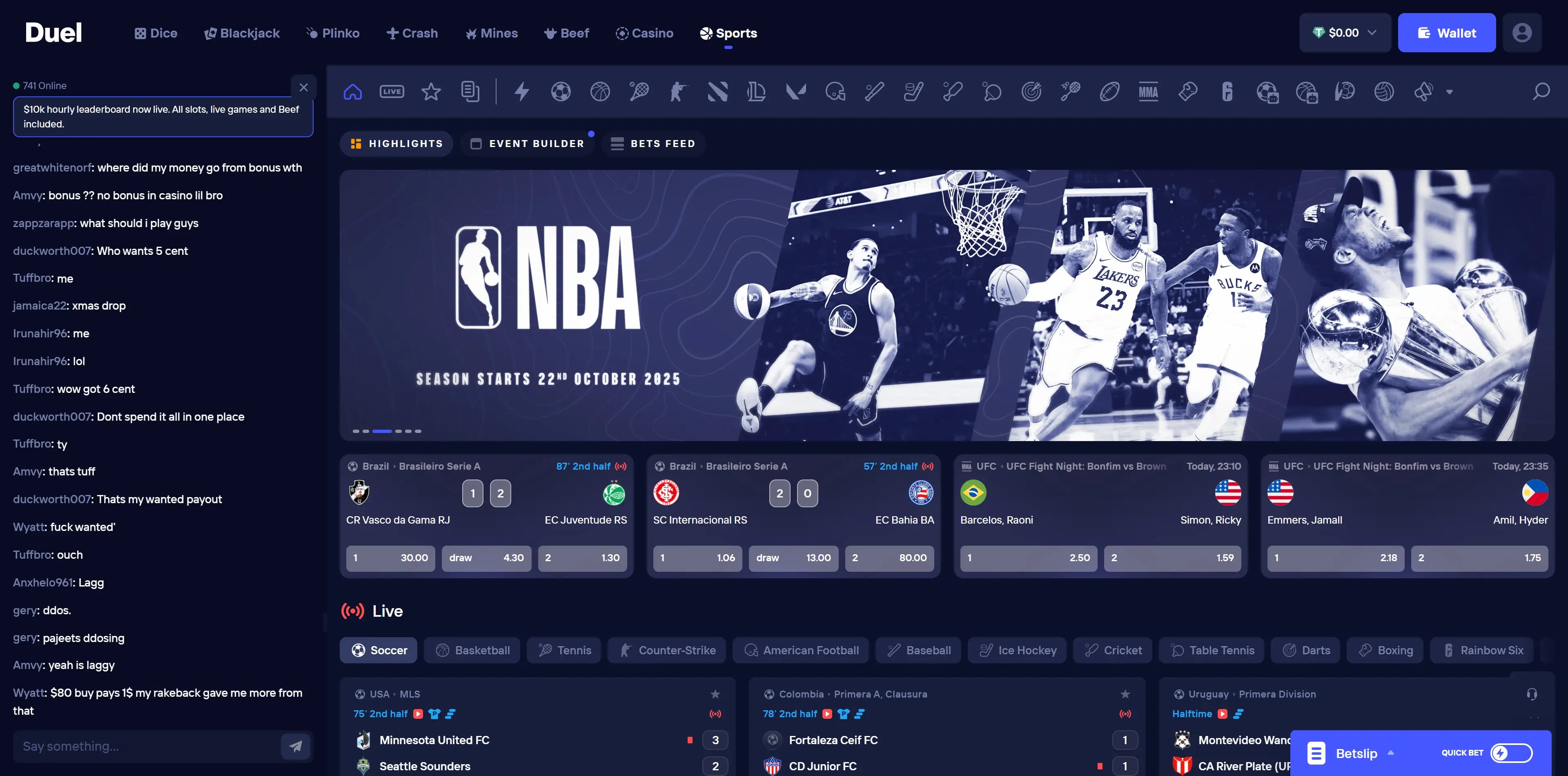 Powered by Betby, Duel's sportsbook offers: